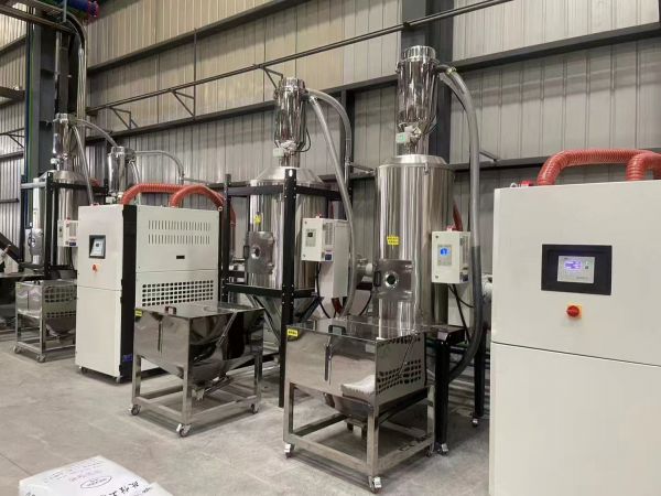 中央控制臺、旋風(fēng)集塵器、高效能過濾器、風(fēng)機(jī)、分支站、干燥料斗、除濕機(jī)、選料架、微動料斗、電眼料斗、截風(fēng)閥、截料閥。